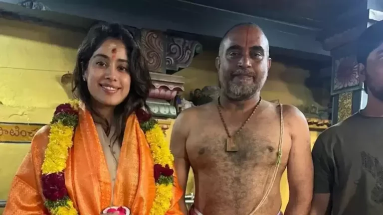 गुरुवार को मंदिर से अभिनेता की कई तस्वीरें और वीडियो सोशल मीडिया प्लेटफॉर्म पर सामने आए। क्लिप्स में जान्हवी एथनिक आउटफिट पहने नजर आ रही हैं। वह अपने आसपास कई लोगों के साथ फर्श पर बैठी नजर आ रही हैं। वीडियो में चल रहे पूजा अनुष्ठानों का संकेत देने वाले मंत्रों को सुना जा सकता है।