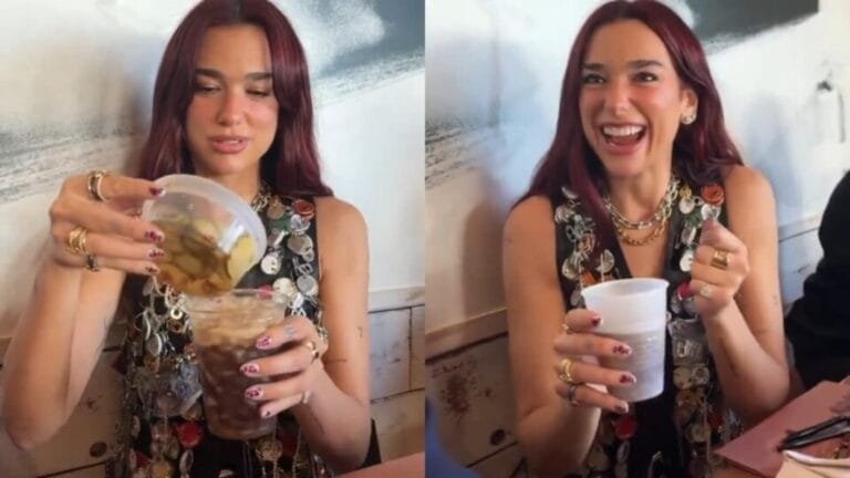 पॉप बेस द्वारा एक्स (पूर्व में ट्विटर) पर पोस्ट किए गए एक वीडियो में, दुआ को बर्फ पर डाइट कोक परोसते हुए देखा गया है – अब तक, बहुत अच्छा। लेकिन फिर, वह इसके ऊपर जलपीनो जूस और जलपीनो के स्लाइस के अलावा अचार का रस और अचार के कुछ टुकड़े डालती है। चेहरे पर बड़ी मुस्कान के साथ वह न केवल इस अजीब मिश्रण का घूंट पीती है, बल्कि अपने परिवार को भी कुछ घूंट पिलाती है। ऊपर से अचार खाते हुए वह कहती है, “वह…मम्म।”