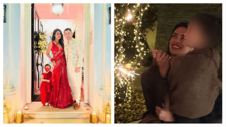 प्रियंका ने अपने अस्थायी लंदन निवास से तस्वीरें साझा कीं, जो दिवाली और हैलोवीन के लिए तैयार किया गया था। उन्होंने पोस्ट को कैप्शन दिया, “बिल्कुल एक परफेक्ट दिवालोवीन।” एक तस्वीर में वह लैसी लाल साड़ी पहने और निक आइवरी कुर्ता पायजामा पहने नजर आ रहे हैं। मालती भी उनके साथ लाल सूट में मैच कर रही थीं लेकिन उनका चेहरा दिल वाले इमोजी से छिपा हुआ था। एक अन्य तस्वीर में प्रियंका ने मालती को गोद में ले रखा है और वे फुलझड़ियाँ जला रही हैं। मालती का चेहरा फिर धुंधला हो गया।