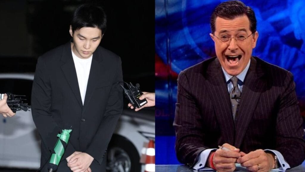 अमेरिकी हास्य अभिनेता स्टीफन कोलबर्ट ने बीटीएस सुगा के डीयूआई पर मज़ाक उड़ाया
