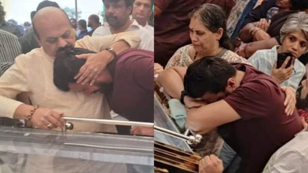 मां सरोजा संजीव के अंतिम संस्कार में कर्नाटक के पूर्व सीएम बसवराज बोम्मई की बांहों में रो पड़े किच्चा सुदीप