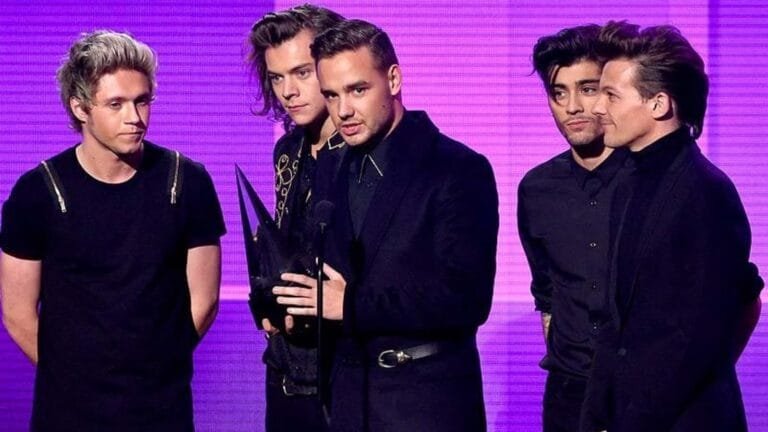 (एलआर) रिकॉर्डिंग कलाकार नियाल होरन, हैरी स्टाइल्स, लियाम पायने, ज़ैन मलिक और वन डायरेक्शन के लुइस टॉमलिंसन ने अमेरिका के लॉस एंजिल्स में नोकिया थिएटर एलए में 2014 अमेरिकी संगीत पुरस्कारों में मंच पर वर्ष के कलाकार का पुरस्कार स्वीकार किया। (एएफपी) (फ़ाइल)