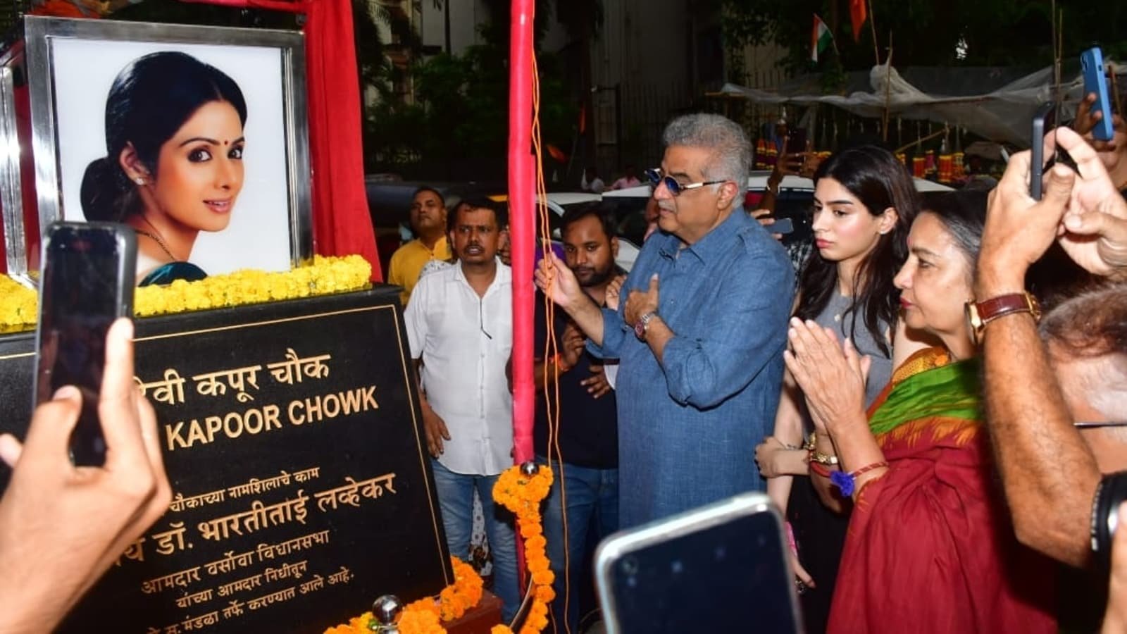 बोनी कपूर, ख़ुशी कपूर ने उनकी मृत्यु के 6 साल बाद मुंबई में श्रीदेवी चौक का उद्घाटन किया। देखो | बॉलीवुड