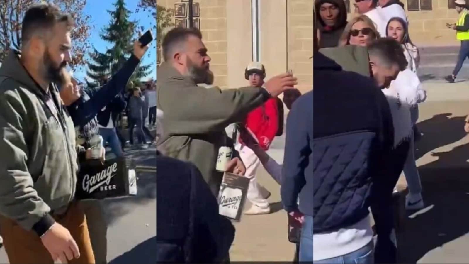 जेसन केल्स ने अपने भाई ट्रैविस केल्स और टेलर स्विफ्ट के रिश्ते पर होमोफोबिक टिप्पणी के बाद एक व्यक्ति का फोन तोड़ दिया।