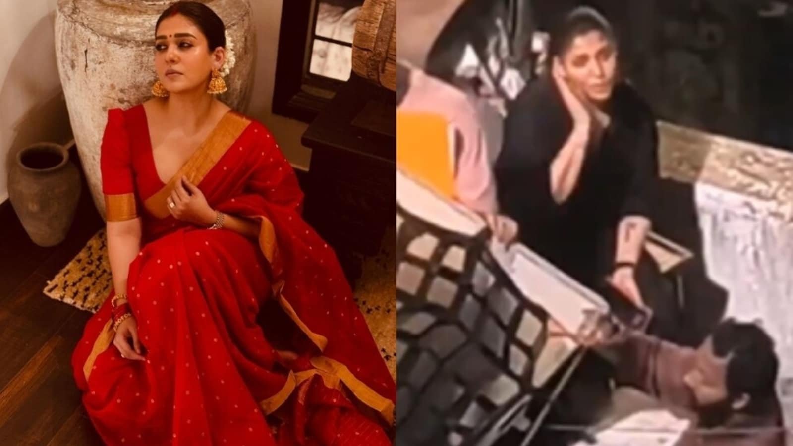नयनतारा ने आउटडोर शूटिंग के दौरान अपने पास बुला रहे एक छोटे प्रशंसक के साथ मनमोहक बातचीत की। घड़ी
