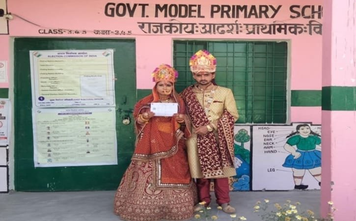 उत्तराखंड: मतदान के दिन आई जिम्मेदारी निभाने वाली खूबसूरत तस्वीरें, विदाई से पहले वोट डालने पहुंची दुल्हन