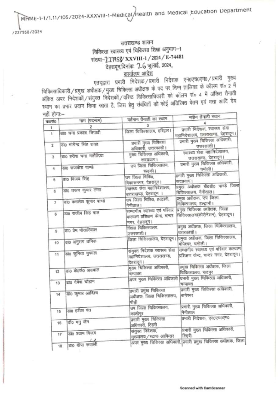 उत्तराखंड: स्वास्थ विभाग में चिकित्सा अधिकारियों के तबादले, आदेश जारी..